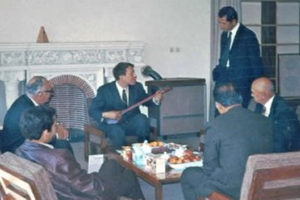 Miller playing rebab with Farid Zoland on his weekly TV show