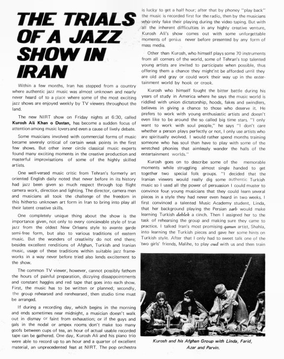 During the 70s Miller became a well-known TV personality hosting his own prime-time weekly jazz and ethnic music show as well as producing and directing a documentry series on jazz history and doing a show in English about Persian arts and culture.