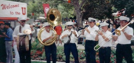 'Doc' Miller's Salt City Saints play authentic New Orleans jazz from the early 1900s. Early New Orleans jazz was developed from various musical sources present in New Orleans around the turn of the century. 'Doc' Miller's dedication to honoring the true early tradition with vocals in French and vintage instruments has earned the Saints many bookings throughout Utah and neighbouring states. 'Doc' Miller was invited to sit in at Preservation Hall in New Orleans in 1991 where he played clarinet one night and piano the next. Miller won Intercollegiate Jazz Festival trophies three consecutive years in the 1960, the Sounds of Young America national composer trophy and several Utah Composers Guild prizes in the 90s. His reconstruction arrangements of vintage New Orleans jazz have been premiered by Utah Symphony, Colorado Springs Symphony and Salt Lake Symphony. In the 1970s Miller hosted his own prime-time TV show on the main NIRTV network in Tehran. The Salt City Saints are a fun high energy band true to tradition like few others. Performances at the famed Days of '47 Parade viewed by millions on TV, at Utah's main festivals, many times at the Univerisy of Utah, Brigham Young University and dozens of school performances add to the credibility of this exciting ensemble.